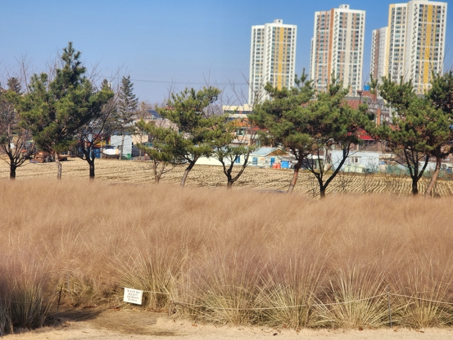 메인건물 앞 핑크뮬리 밭